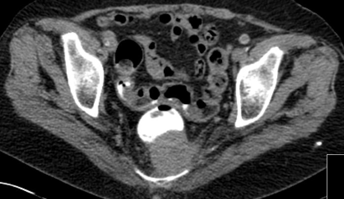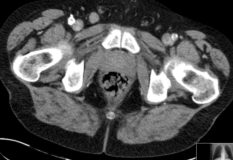 | CT | 66jähriger Mann, dass er seit einigen Wochen Blut im Stuhl gehabt habe.