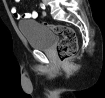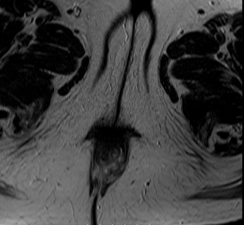 | MRT | 73-jährige Frau mit einen 1cm großen Ulkus perianal bei 5 Uhr.