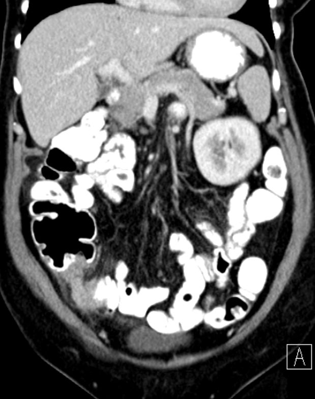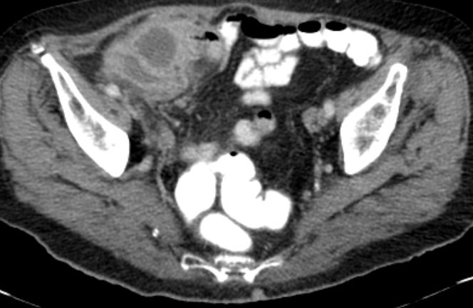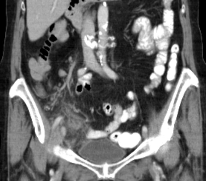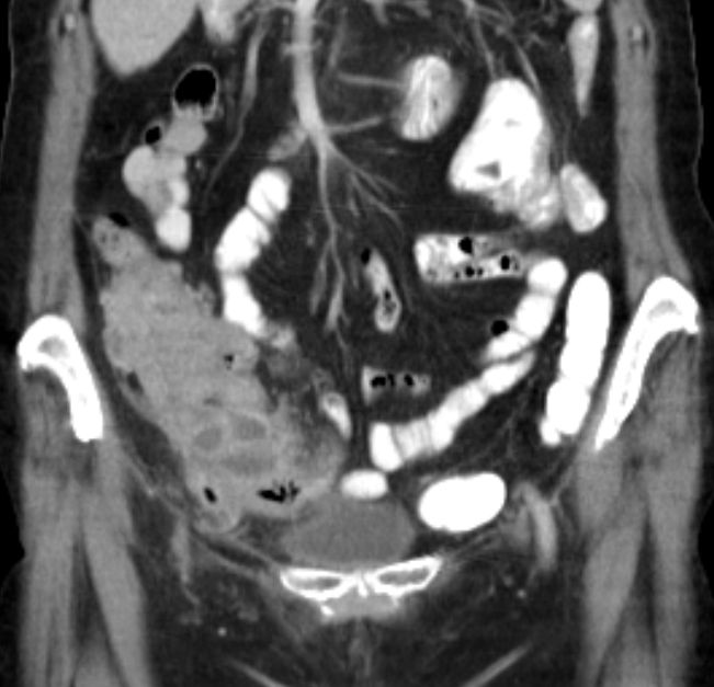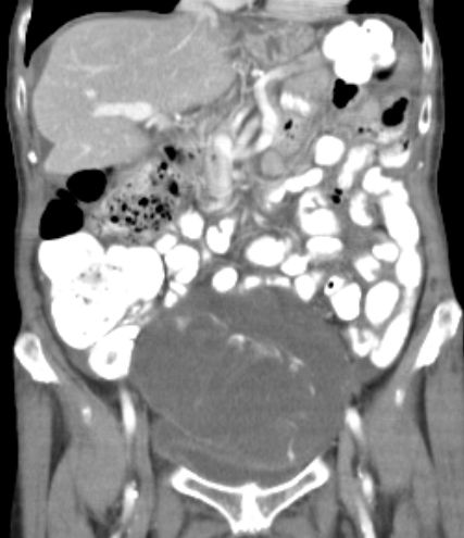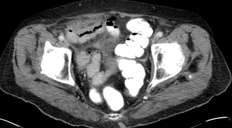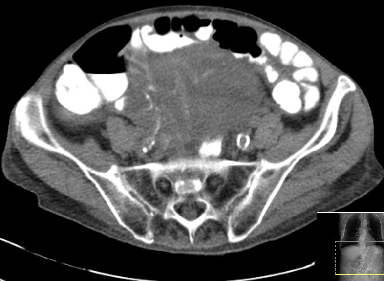 91-jährige Frau 2 Jahre nach OP einer muzinösen Neoplasie der Appendix. Jetzt Rezidiv.![]() |