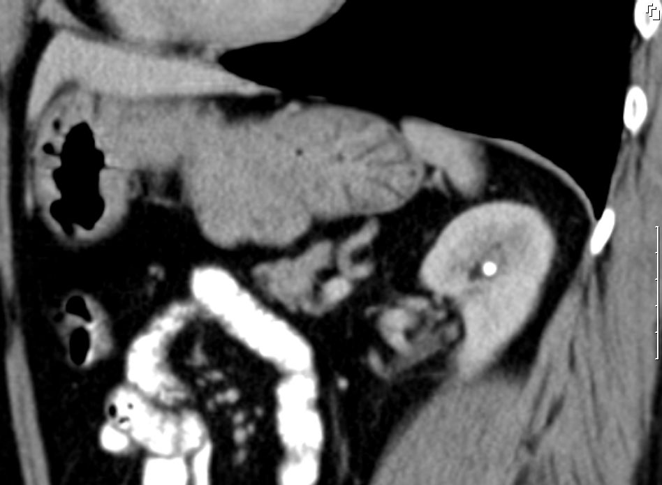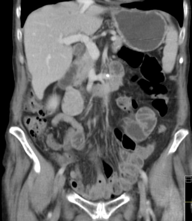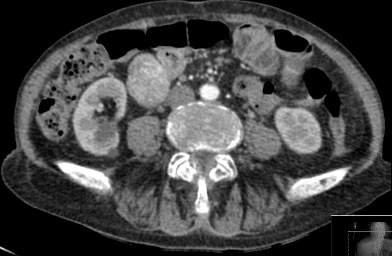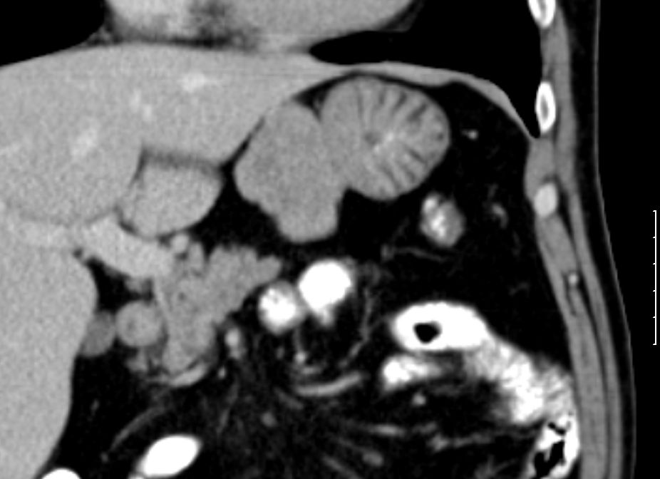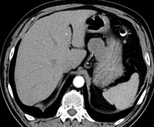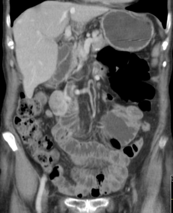60-jähriger Mann, der vor 12 Jahren ein GIST mit Befall von Magen und Quercolon hatte.