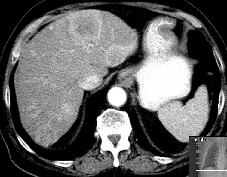 78-jähriger Mann, der 2 Jahre nach GIST des Dünndarms Lebermetastasen entwickelte.