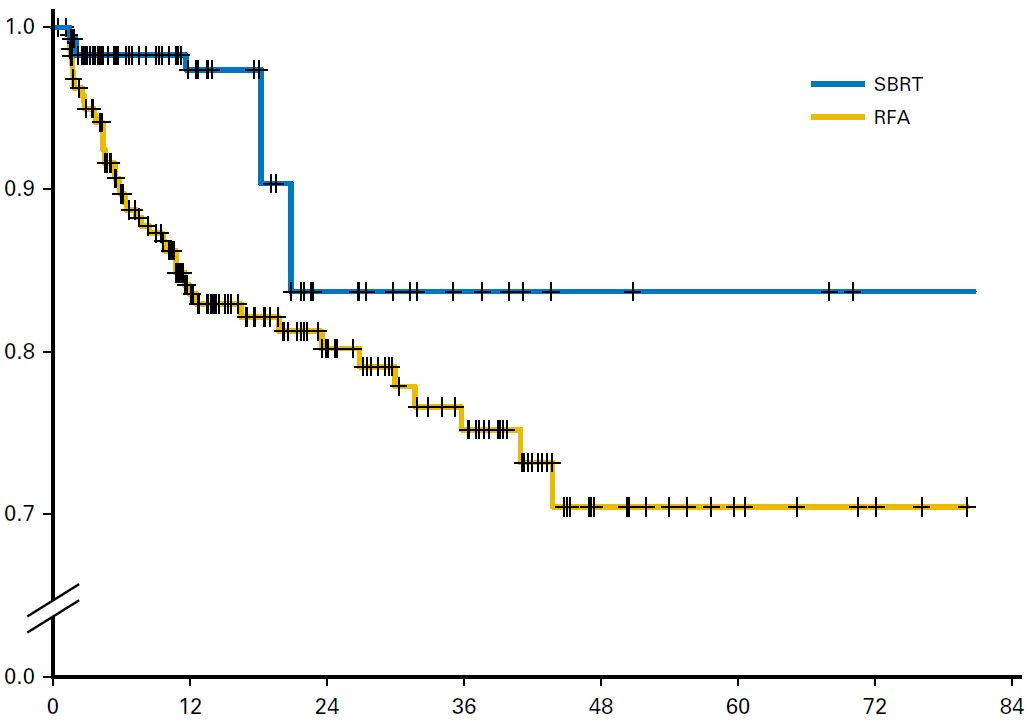 hepatozellulären Tumoren 2004-2012. 161 wurden mir RFA behandelt, 63 mit SBRT