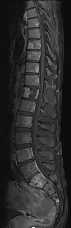 Das MRT zeigt Wirbelmetastasen.![]() |