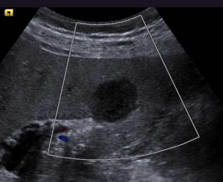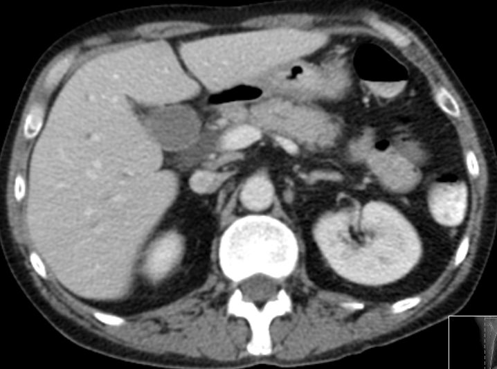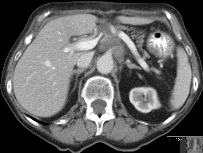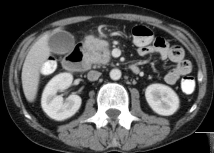 | Lokalrezidiv | 77-jährige Frau 9 Monate nach pyloruserhaltender Pankreaskopfresektion. Das Rezidiv hat die Vena portae eingegengt.![]() |