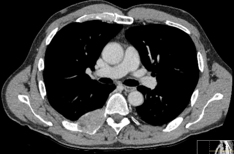 Metastase am Ansatz der 7. Rippe rechts mit drohendem Einbruch in den