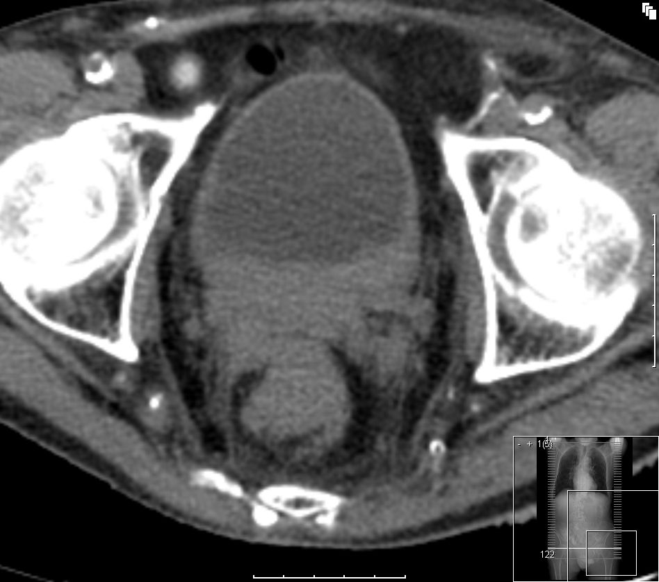 mit Infiltration des Blasenbodens und der Samenblasen.![]() | |