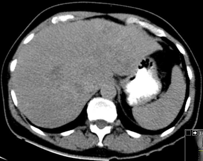 CT ohne KM sind keine Metastasen sichtbar.![]() |