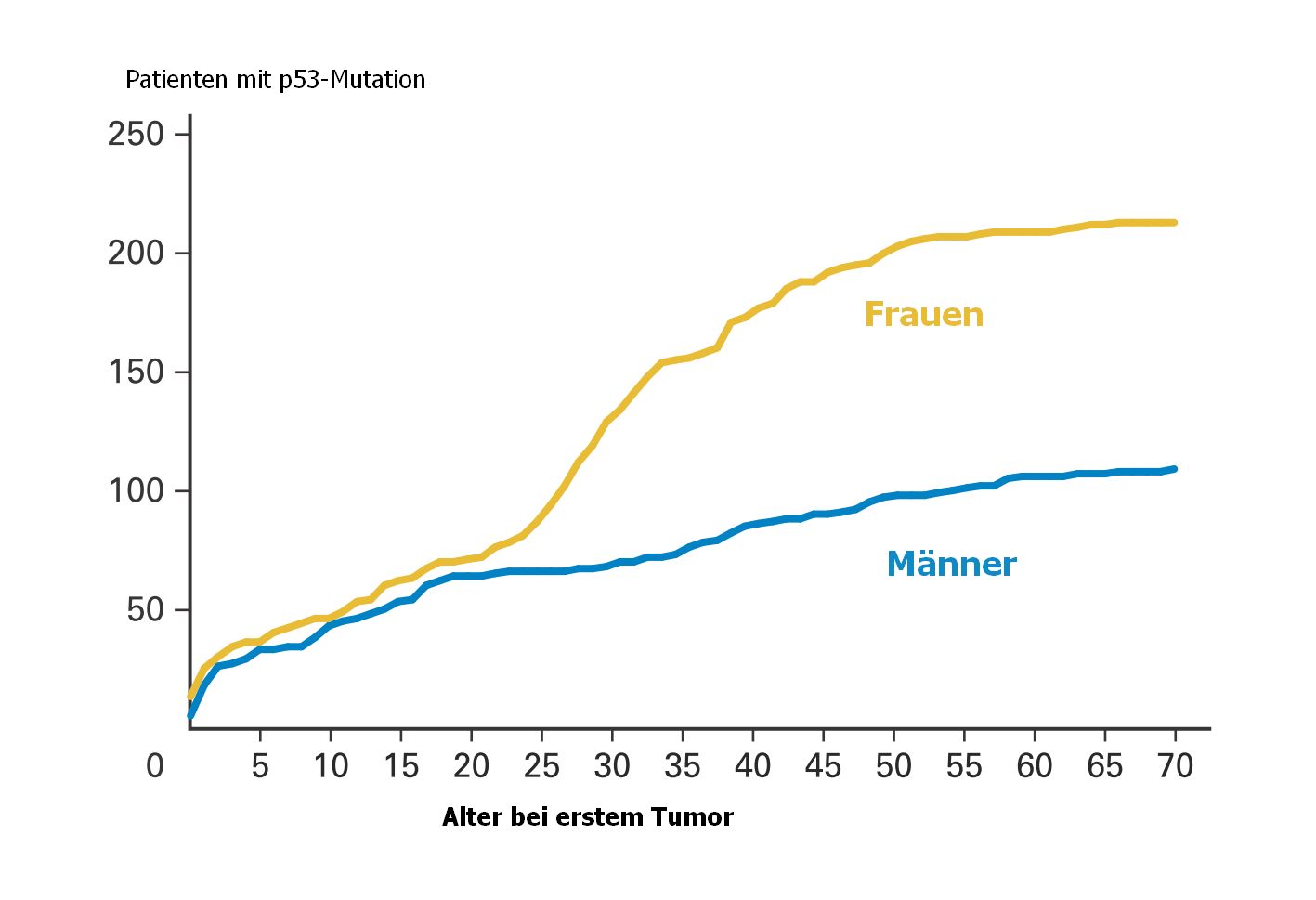 - familiäres Auftreten: Typischer LFS-Tumor unter 46 Jahre und Verwandter unter 56 Jahre mit LFS-Tumor oder multiplen Tumoren oder