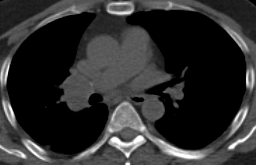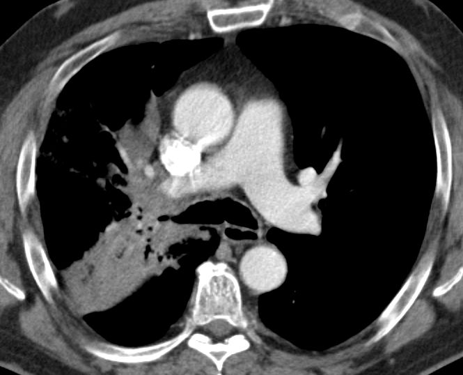 56-jähriger Mann mit einem Adeno-Ca des rechten Mittellappens. Im CT große