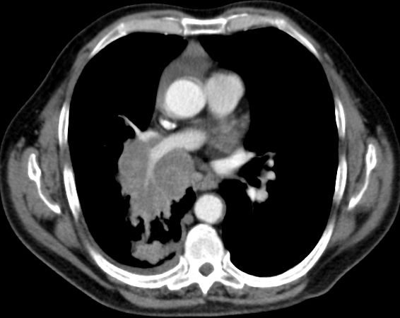 Kleinzelliges Bronchialkarzinom des rechten Mittellappens T3 N3 M0.![]() ![]() | ||