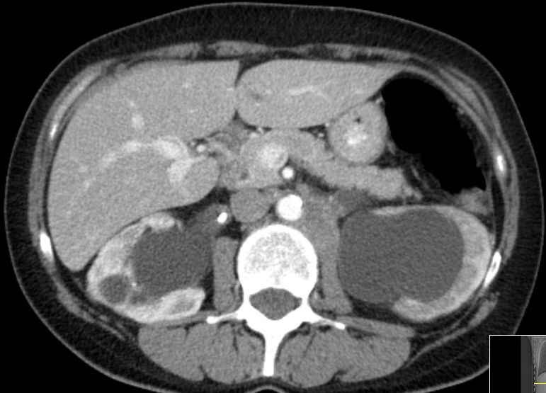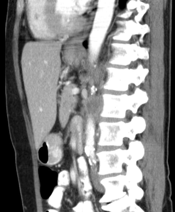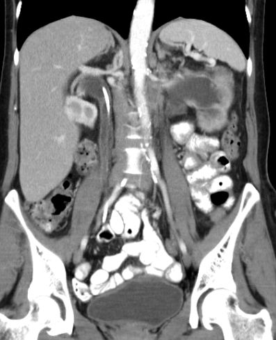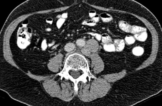 ![]() 2 große Lymphknoten links zwischen Aorta und Musculus psoas. | ||