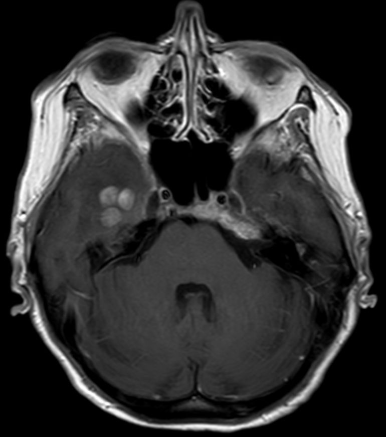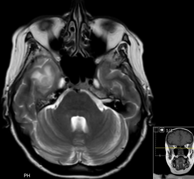 An der Basalfläche des rechten Temporallappens KM - aufnehmende RF.![]() |