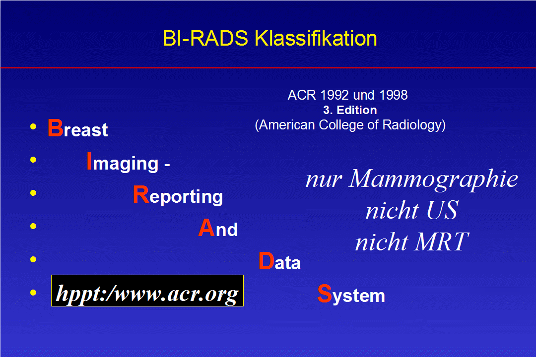 | allgemeines | Mammographie-Bewertungssystem analog dem PAP-Einteilung von zervikaler Krebsvorsorge - Zytologie | |