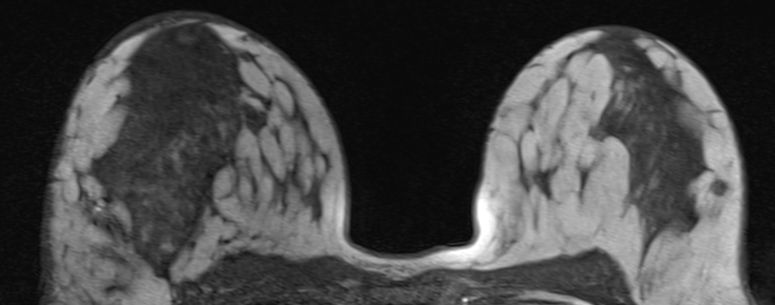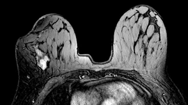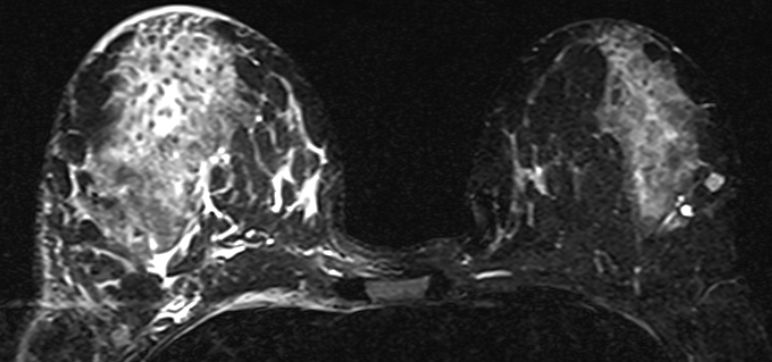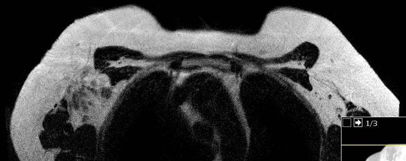 Mammographie und Sonographie o.B. Das MRT zeigt deutlich die axillären