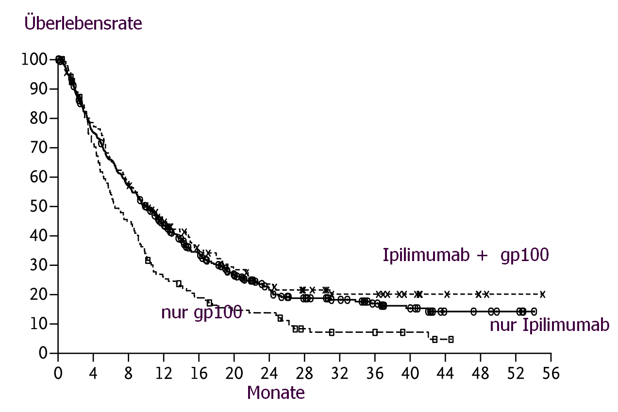 | Ipilimumab | 3 mg/kg | gp100 | alle 3 Wochen, 4x | ||||||||||||||||||||||||||||||