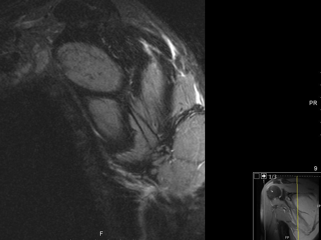 63-jähriger Mann, der vor 5 Jahren eine T - Promyelozyten - Leukämie hatte. Nach ASCT bisher rezidivfrei. Jetzt beschwerden in der rechten Schulter. Das MRT zeigt intramuskuläre Raumforderungen. Die Biopsie ergab Infiltrate der APL. | |||