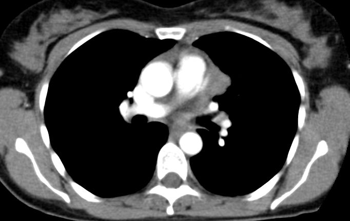 48-jährige Frau mit Subclavia - Thrombose links. Ursache war ein großzelliges B-Zell-Lymphom des oberen Mediastinums.![]() |