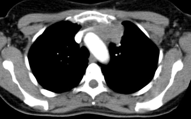 mediastinaler Bulk, oft mit Infiltration von Lungen, Pleura, Pericard. | KM-Befall selten, LK außerhalb des Mediastinums meistens frei. | |