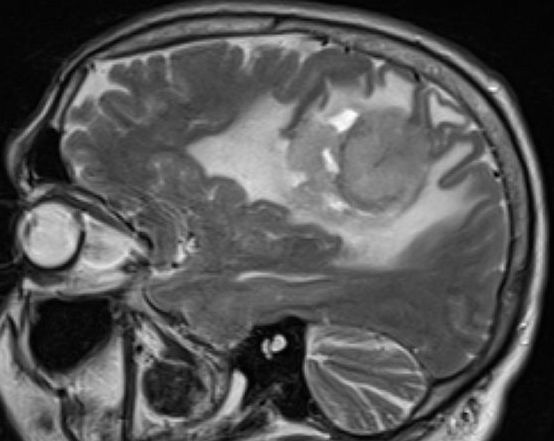 59jähriger Mann, bei dem Gangstörungen auffielen. Histologisch primär zerebrales aggressives T-Zell-Lymphom.![]() | |||