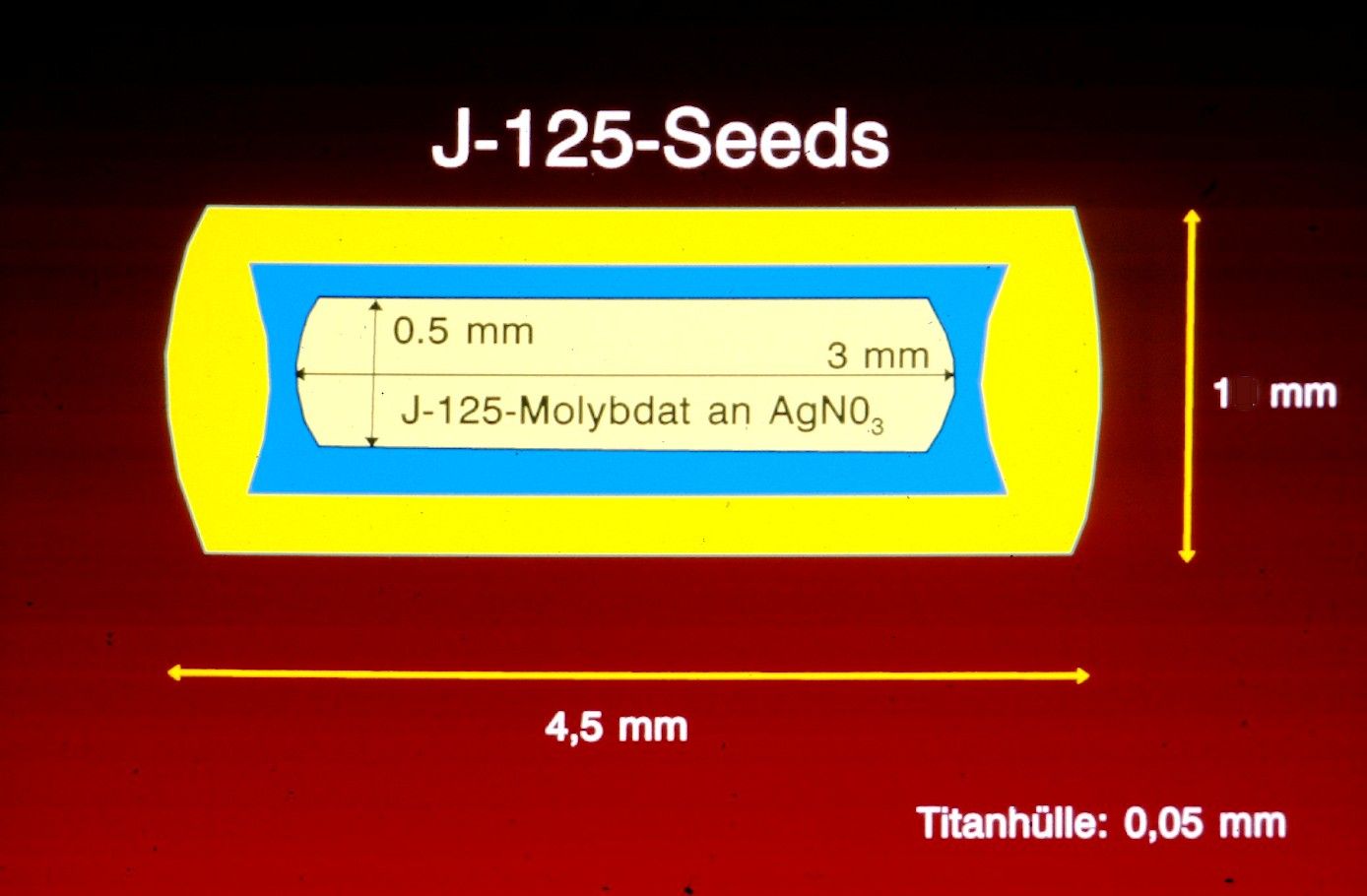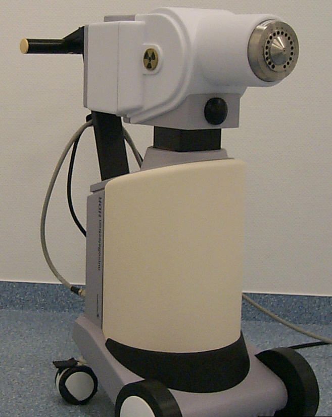 | Röntgenmarker | Zur Positionskontrolle des Applikators und der Abbildung eines internen Maßstabs wird in die Applikationsröhre ein Draht mit Bleimarkierungen eingeführt. | ![]() | ||||||||||||||||||||||||||||||||||||||||||||