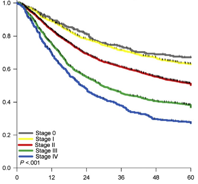 | Prognose | Bei reinem Schleimhautbefall ist die Prognose günstig. | Überlebensrate von 7270 Patienten mit Blasenkarzinom des National Cancer Data Base 1998 bis 2004 (2): | ![]() |