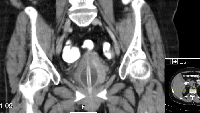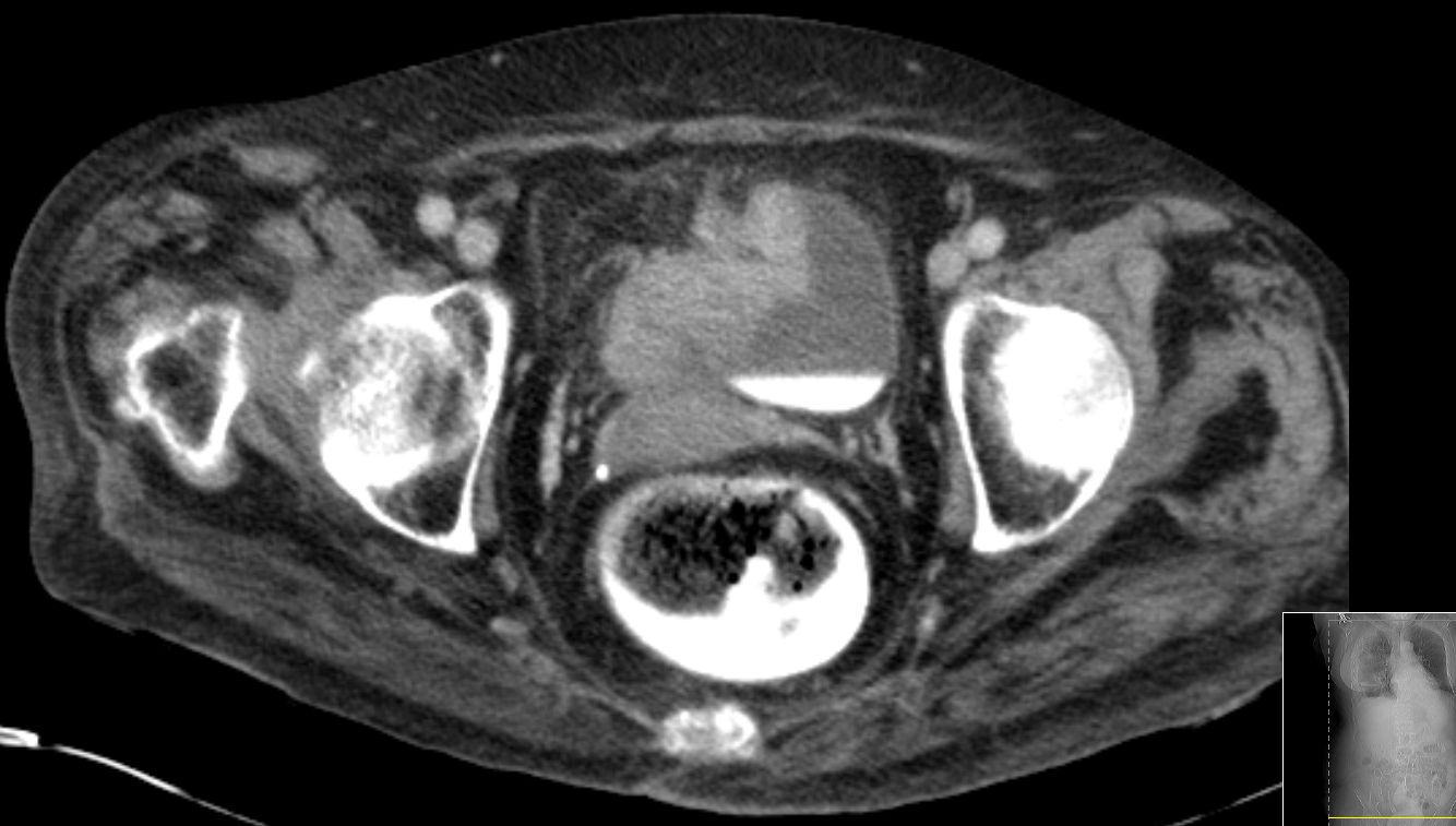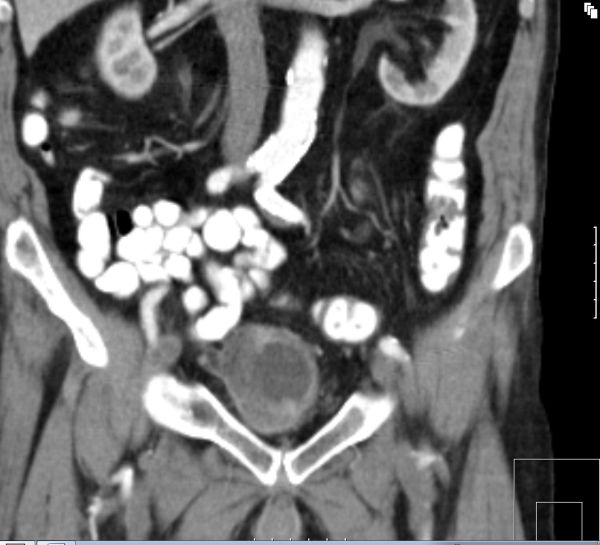 später Rezidiv an der linken Beckenwand mit Beckenknocheninfiltration.![]() | |||