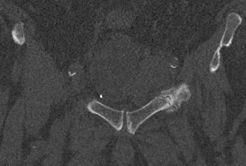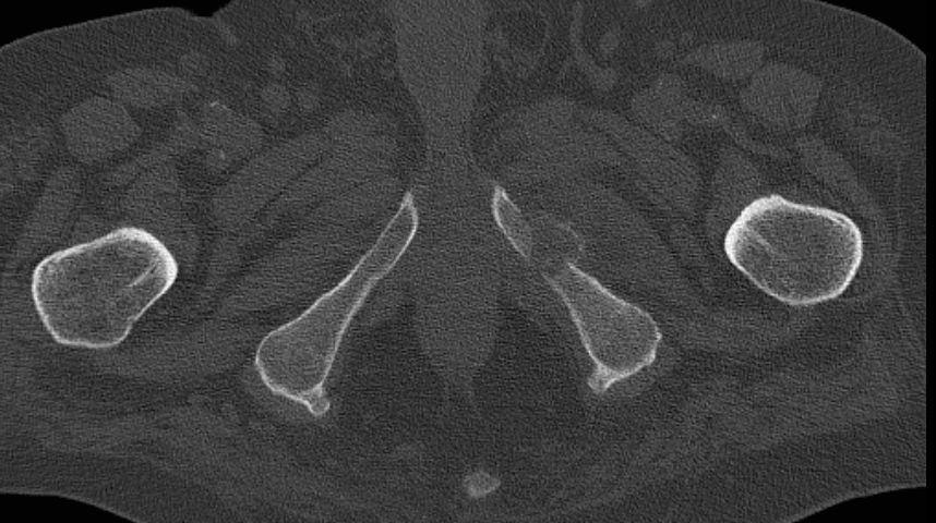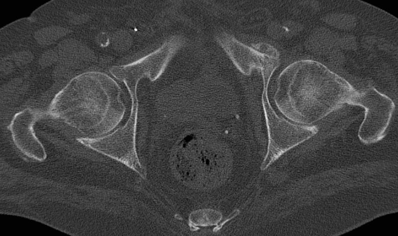 | Knochenmetastasen | 72-jähriger Patient, der vor 3 Jahren ein Harnblasen-Ca hatte: Blasenteilresektion. | Vor 2 Jahren 1. Rezidiv T1 G2: TUR-B. Vor einem Jahr 2. Rezidiv: Blasenteilresektion pT3a G3. | Vor 4 Monaten Lungenmetastastasen. Jetzt Schmerzen beim Sitzen und Belastung des linken Beins. |