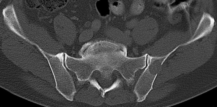 Asymptomatische Lyse am linken Darmbein![]() | ||||