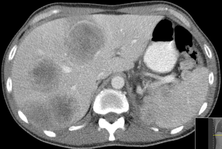 Nierenzellkarzinom mit sarkomatoider Entartung. In der Leber große