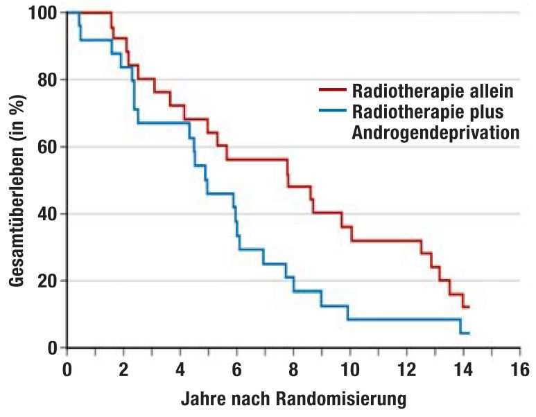 15-Jahres-Überleben: 20,00 % bei RT alleine und 8,33 % bei RT plus ADT),