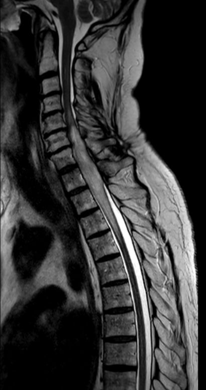 | Myelon | 63-jähriger Mann mit Querschnittssymptomatik. Auch nach Dekompression keine Motorik oder Sensorik der unteren Körperhälfte. | ||