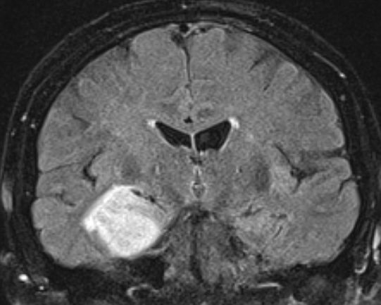Die MRT-Kontrolle mit KM vor einem Jahr zeigt eine unauffällige Resektionshöhle.![]() |