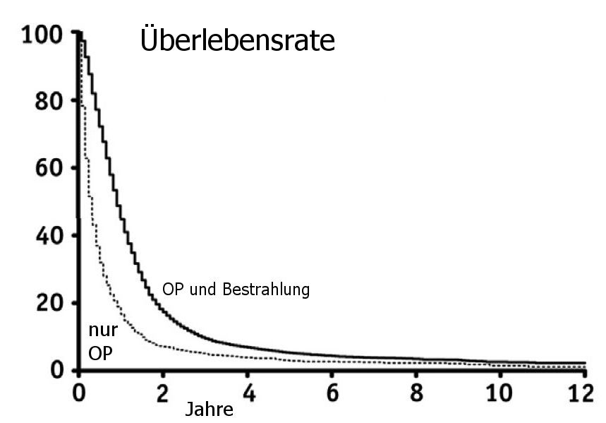 Eine Strahlentherapie nach Operation verbessert die Prognose signifikant.![]() Modifiziert nach (4). SEER-analyse. | |||||||||||||||||||||||||||||||||||||||||||||||||||||||||||